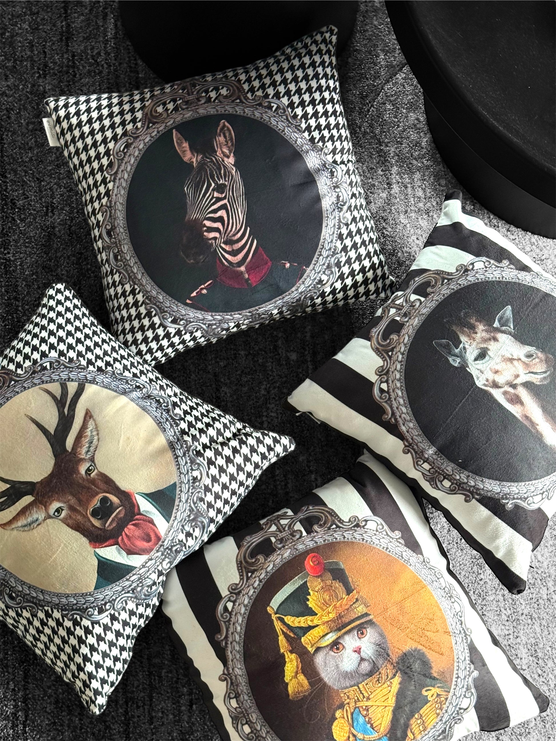 Калъфка за декоративна възглавница с двустранно изображение на елен, изработена от мека кадифена материя. Закопчаване със скрит цип.