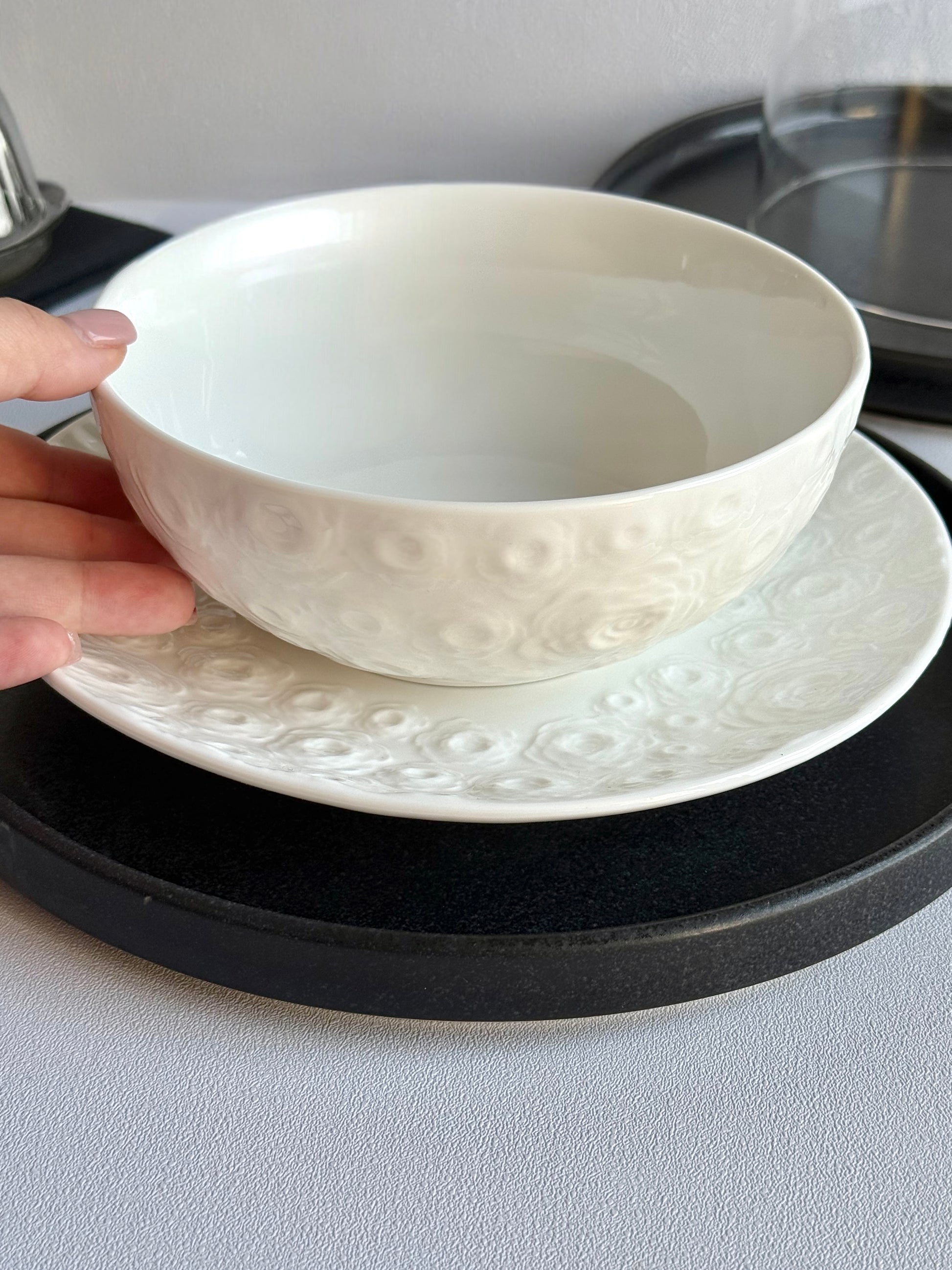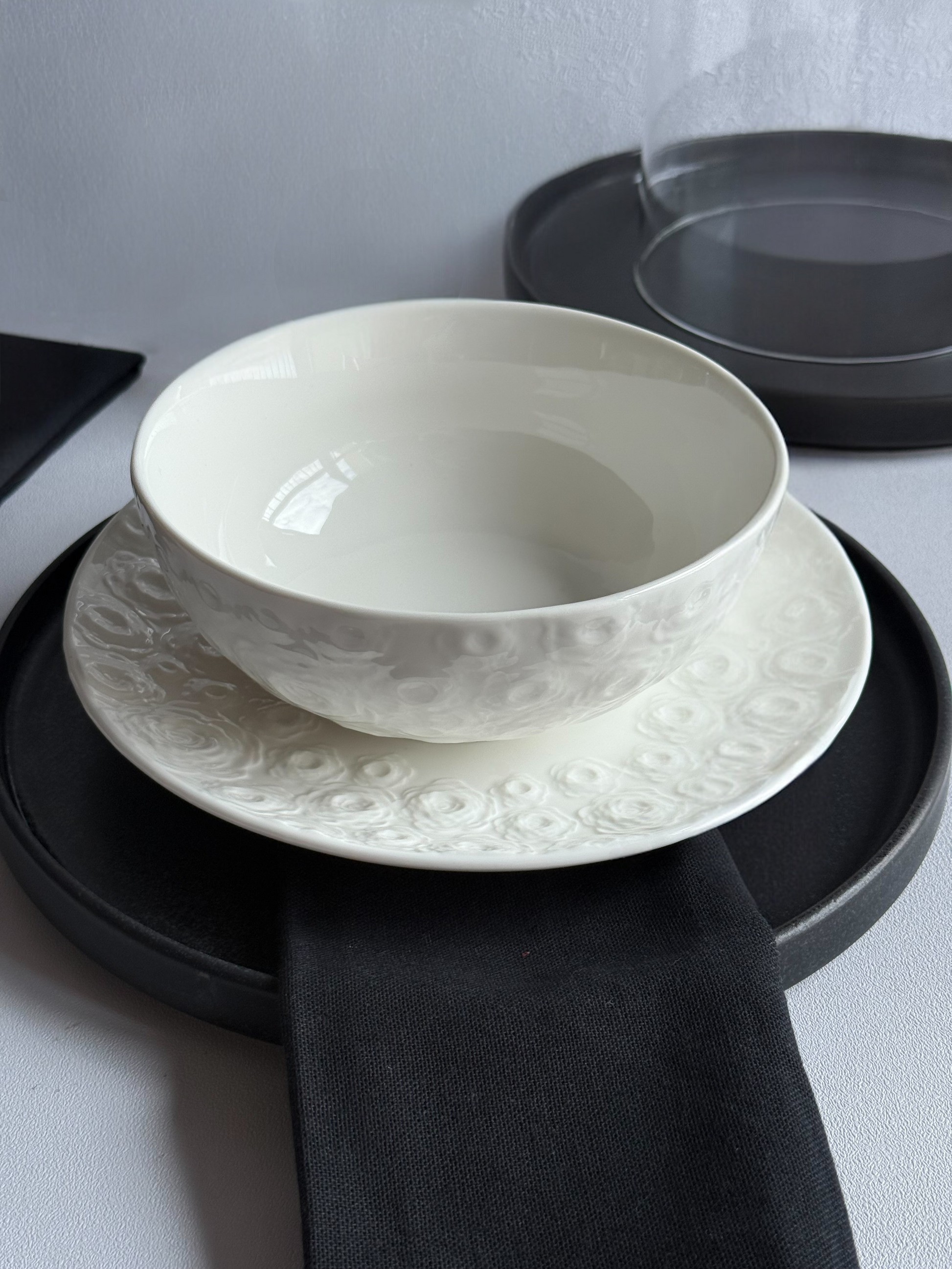 Купа за супа с изчистен дизайн и релефна повърхност на цветя в красива подаръчна кутия. Комбинират се с чинии от същата серия Roses.