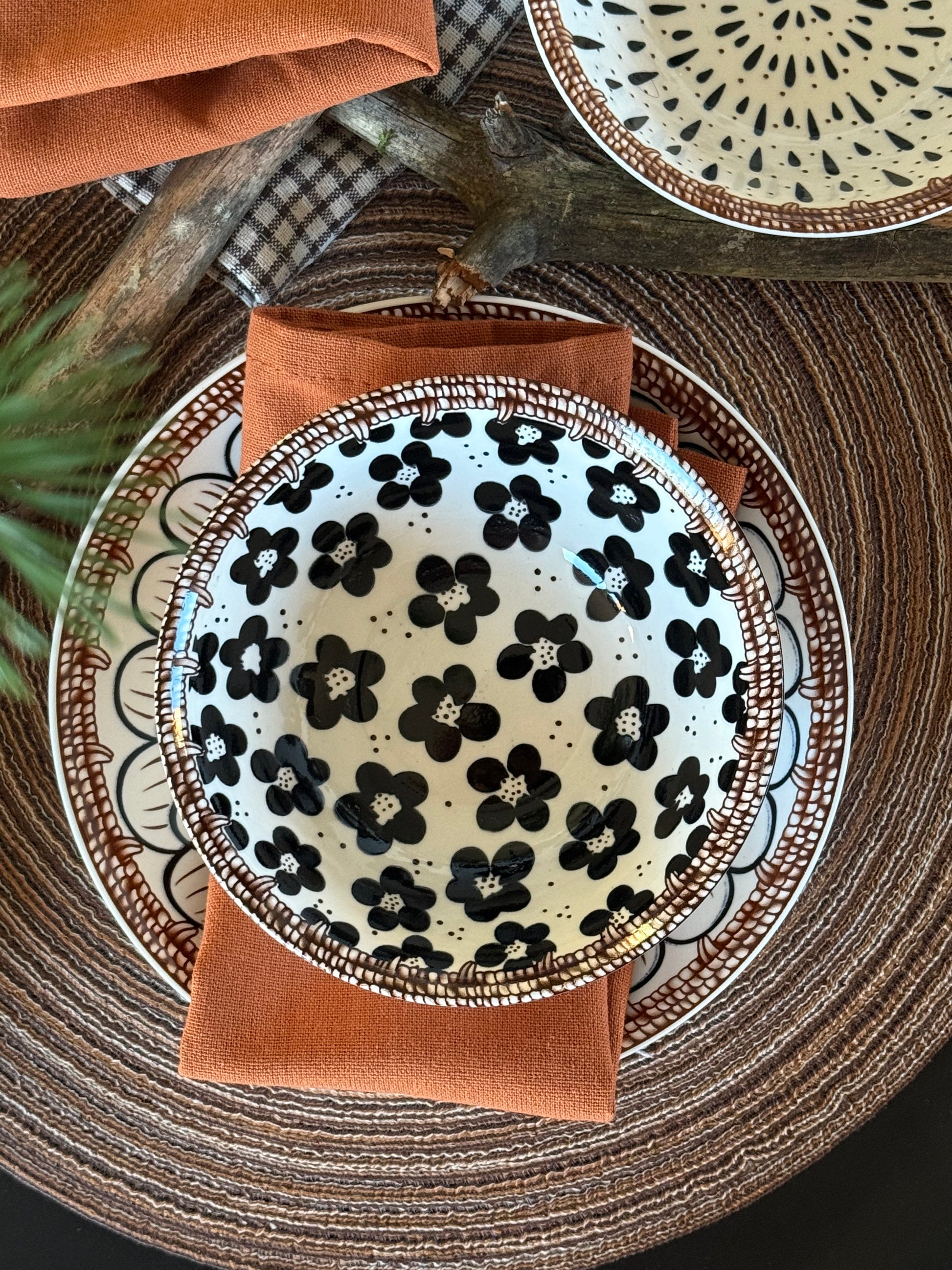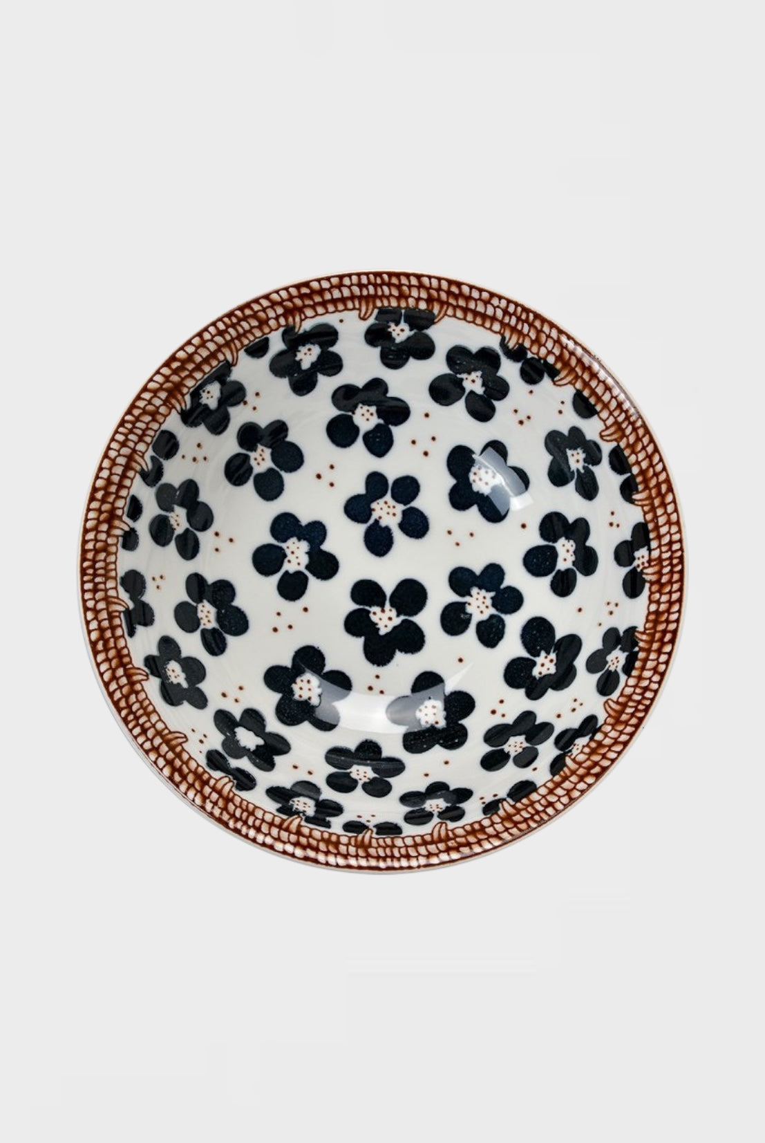 Купа за супа от керамика с кафяв кант и флорален дизайн. Съчетава се със съдове за хранене от същата колекция Dorna.