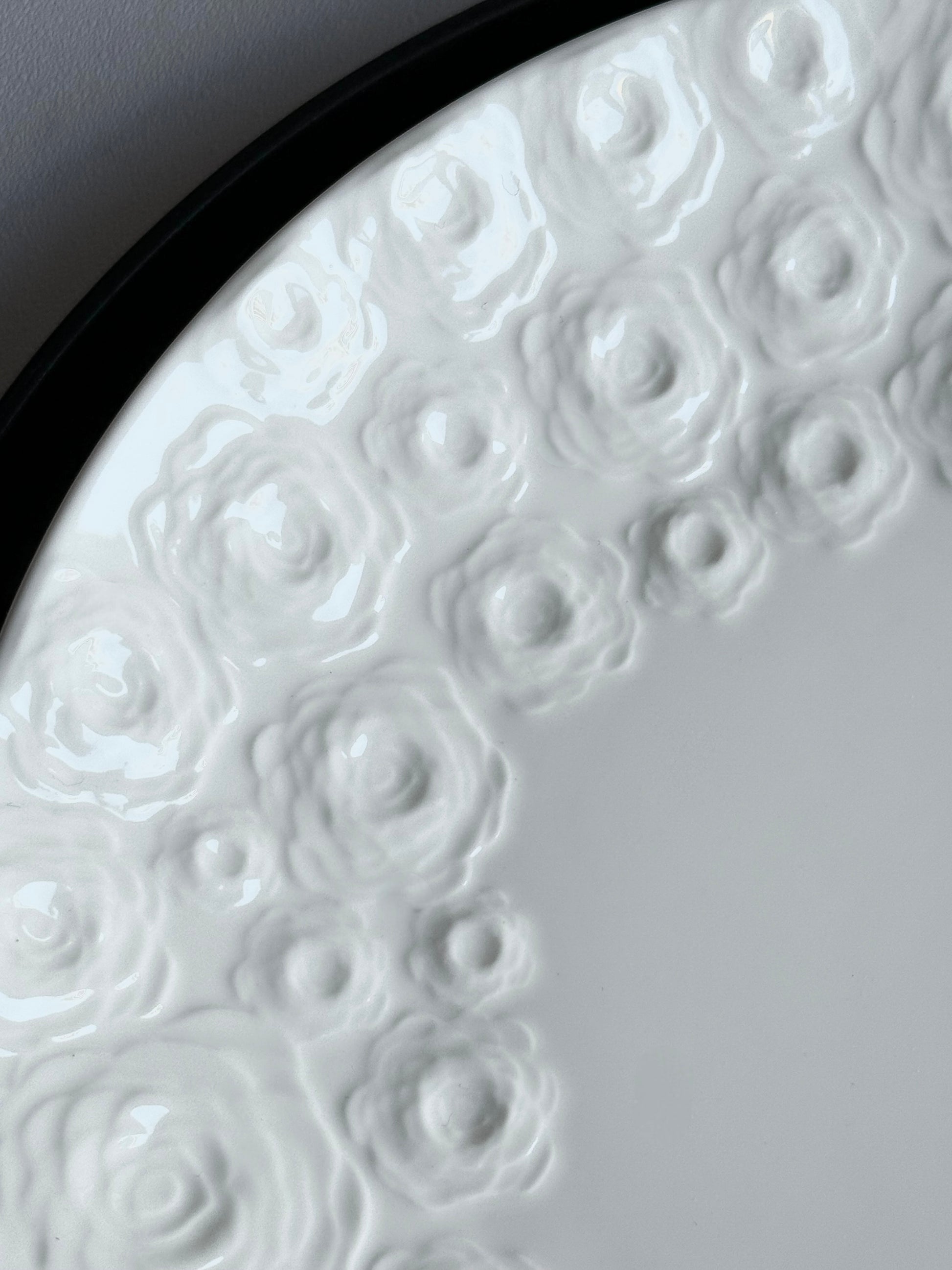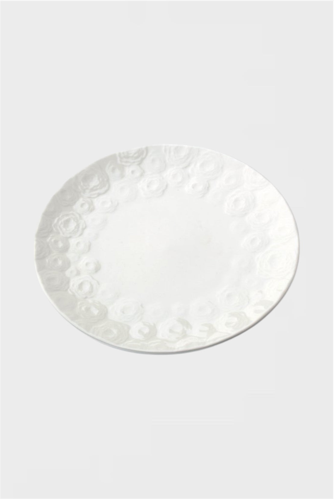 Чиния за предястие с измистен дизайн и релефна повърхност на цветя. Минималистичният дизайн придава нежност и едтествена красота.