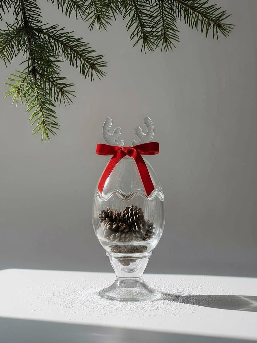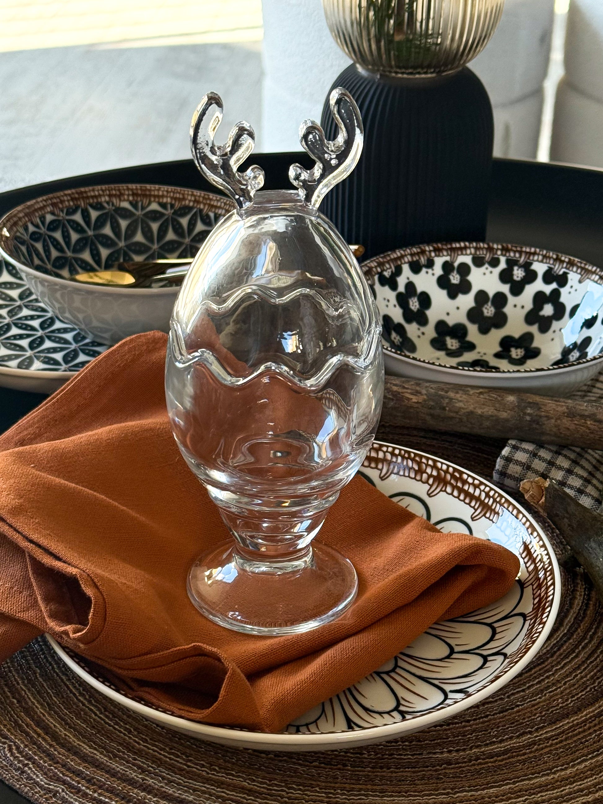 Съд за съхранение на сладкиши и бонбони от стъкло с капак с декорация елекнски рога.