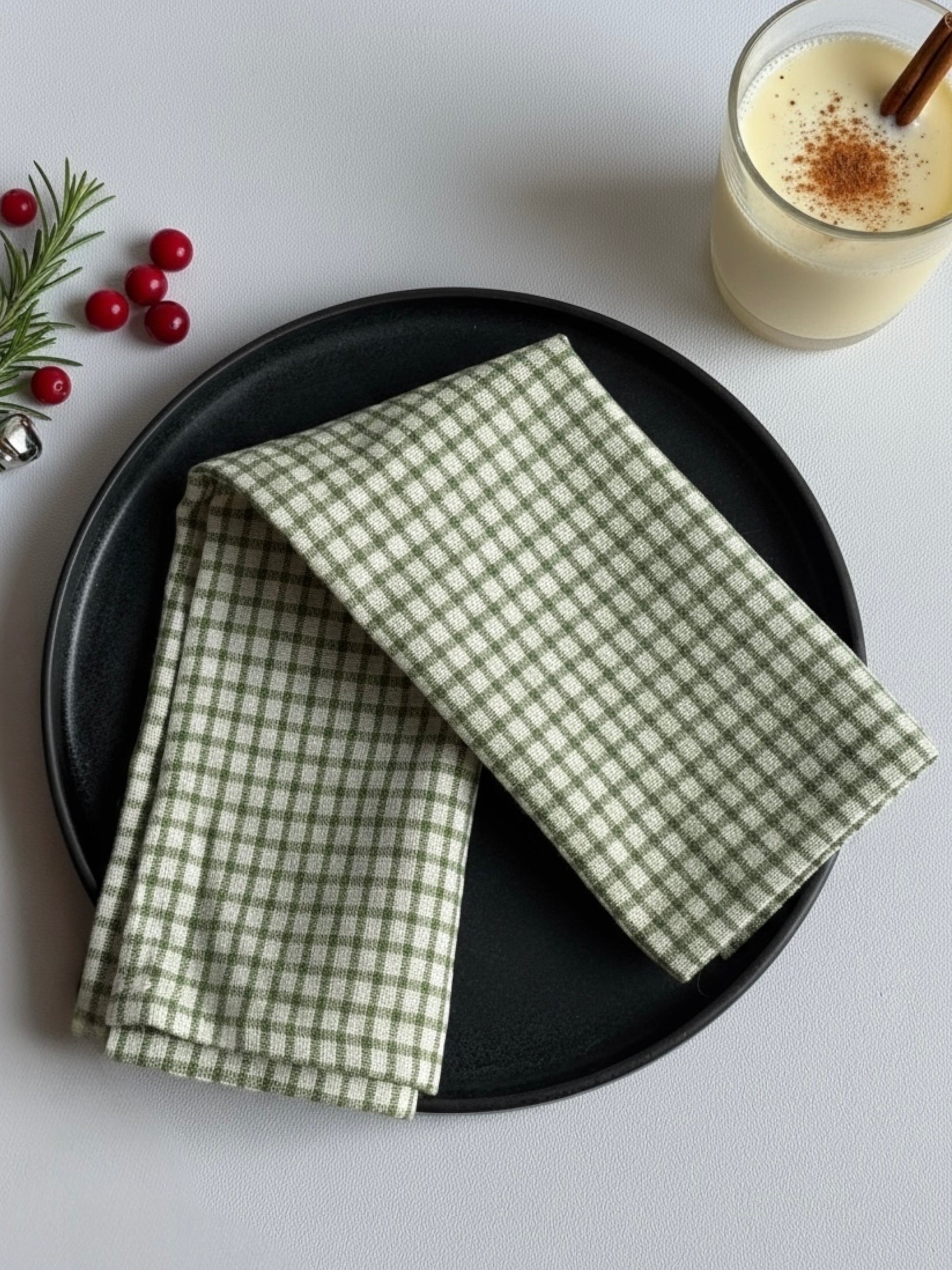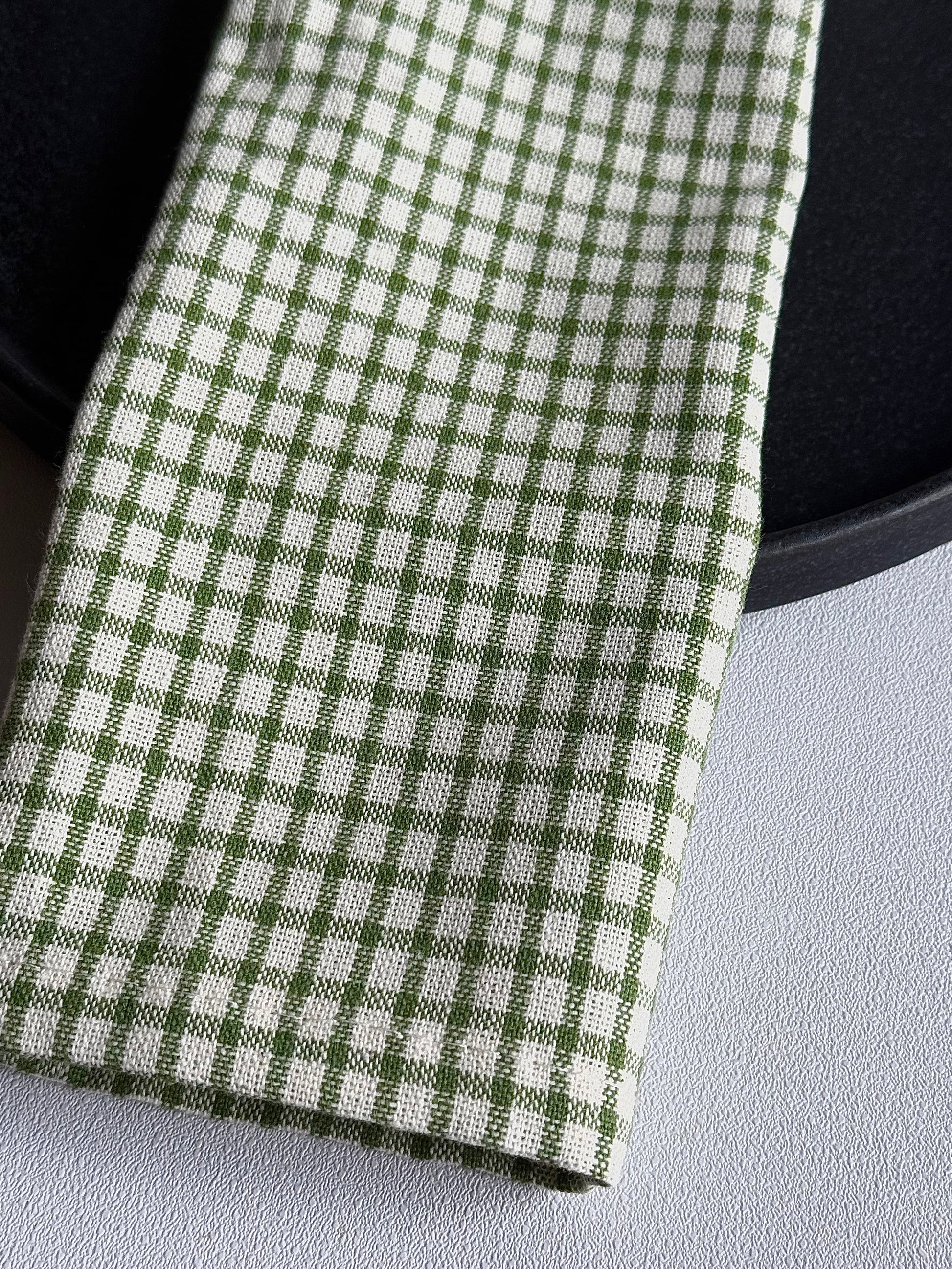 Комплект 2 броя текстилни салфетки от памук с кариран дизайн в тъмно зелени.