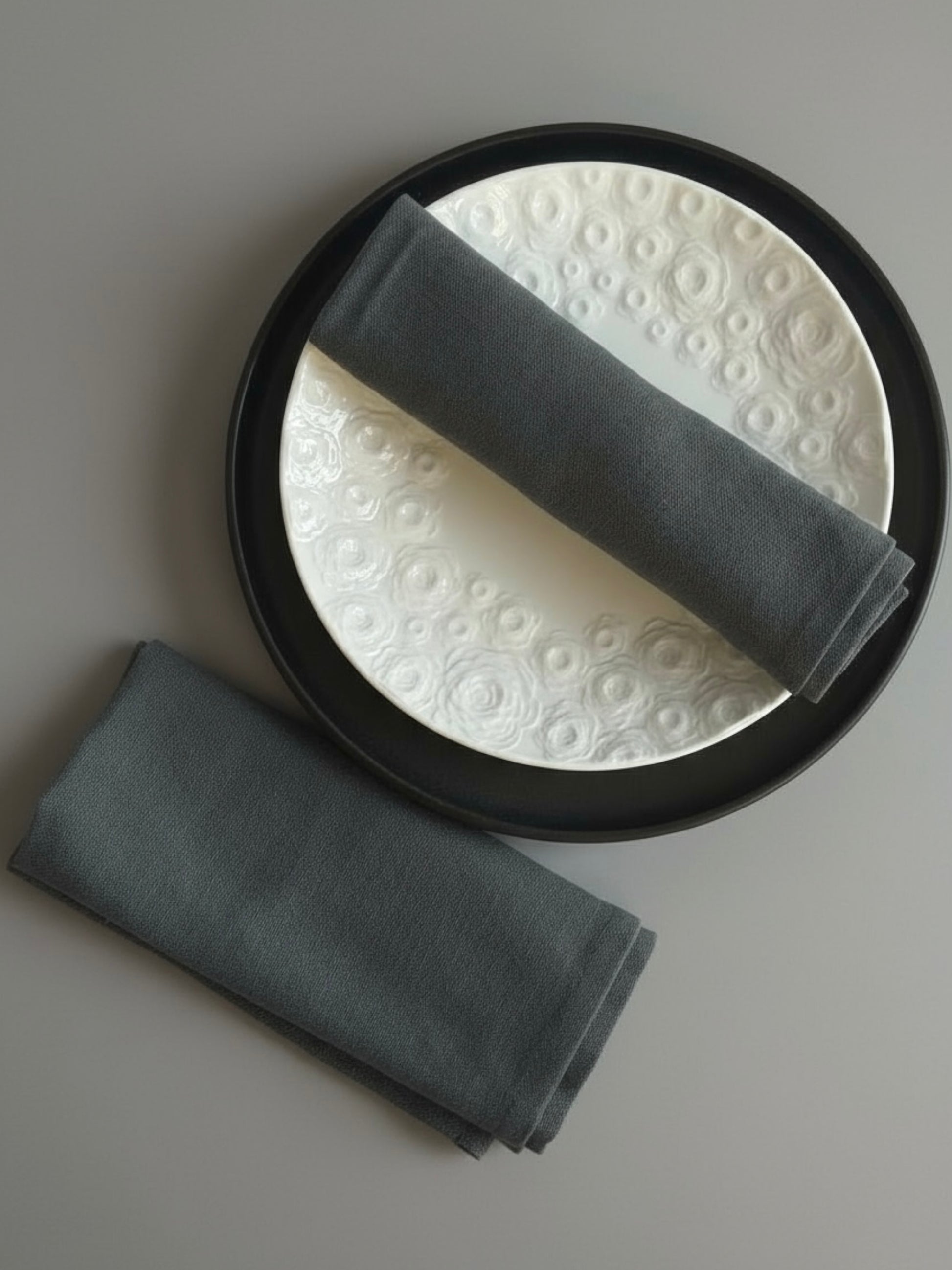 Комплект 2 броя текстилни салфетки от памук в тъмно сиво.