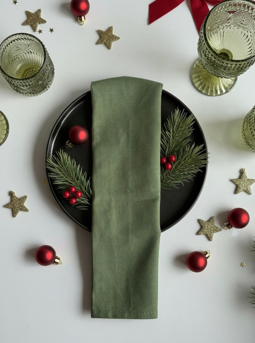 Комплект 2 броя текстилни салфетки от памук в тъмно зелен цвят.