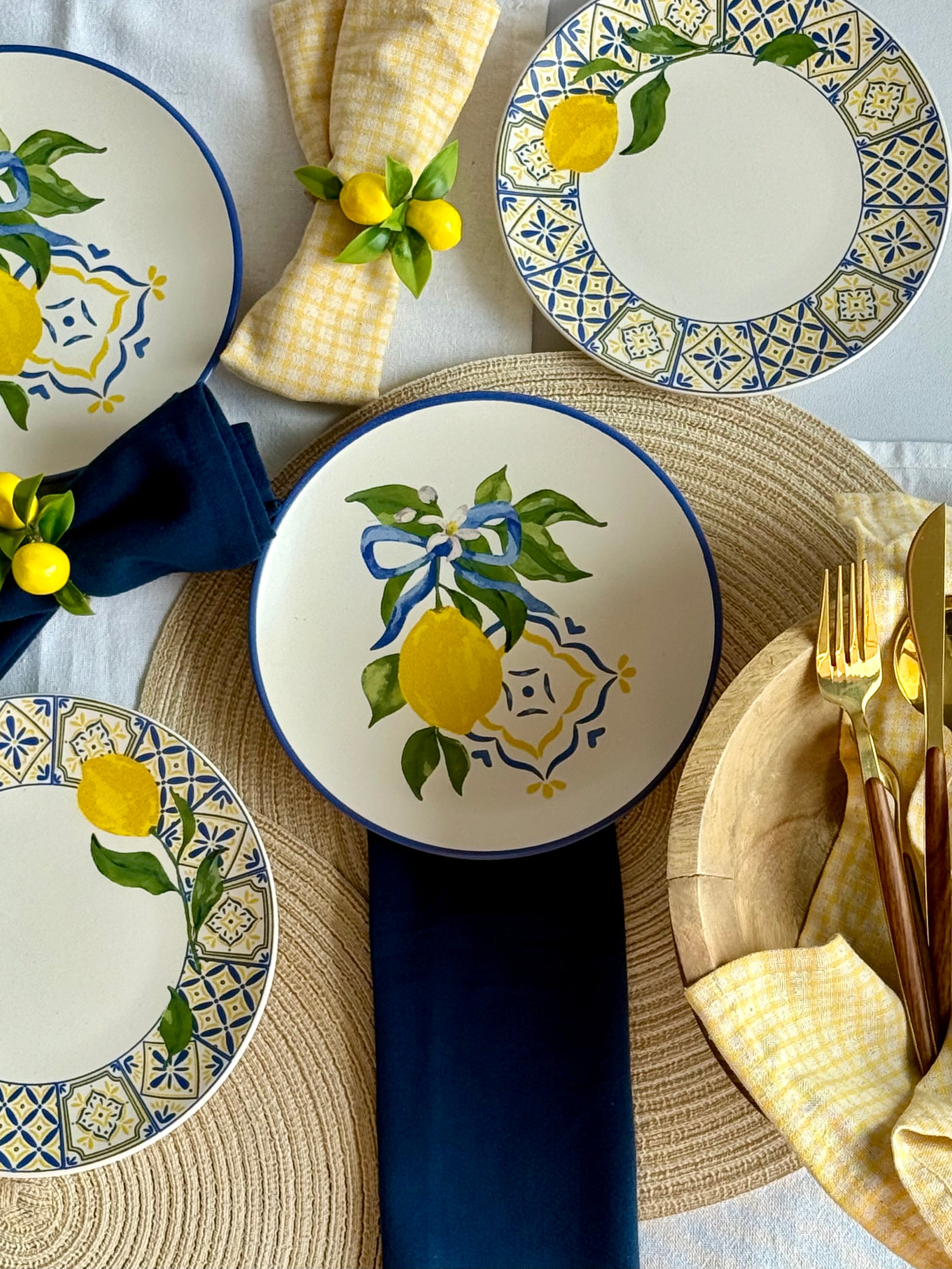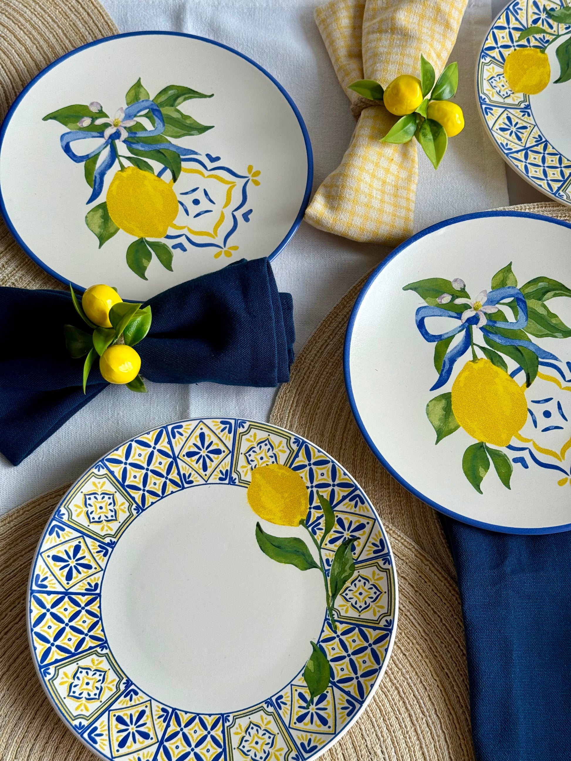 Комплект 4 броя чинии за предястие или десерт с мотиви и сив кант.